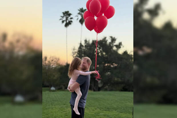 4-летняя Лилибет сидела на руках принца Гарри и держала воздушные шары. Девочка была одета в розовое платье и колготки. Герцог Сассекский был запечатлен в темно-синей футболке и черных трениках.