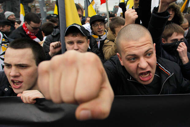 Точно так же собравшиеся на "Русский марш" несистемные правые порвали с со своими предшественниками из 1990-х годов, которые требовали восстановления СССР, и сосредоточились на России в границах 1991 года, для которой Средняя Азия и Закавказье - это зарубежье.Сбор на первый "Русский марш" был объявлен в 11 утра на Чистопрудном бульваре, откуда колонна организованно двинулась к Славянской площади. Люди шли под барабанный бой, непрерывно заряжая лозунги "Слава России", "Русские, вперед!", "Россия для русских, Москва для москвичей, давай-ка отсюда [убирайся] скорей!".