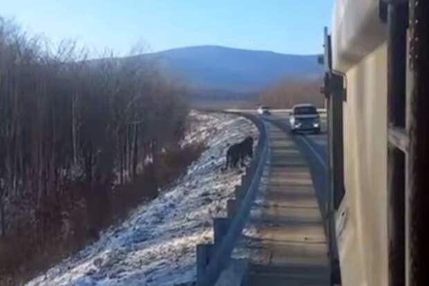 Водитель запечатлел инцидент на видео. На кадрах заметно, как хищник приближается к обочине дороги, но пугается проезжающего автомобиля и уходит в лес.