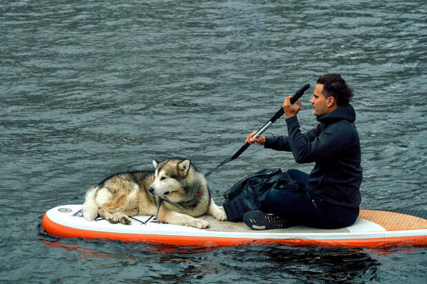 Инцидент произошел в воскресенье, 14 мая, на озере Изменчивое. Ветер опрокинул в воду двух человек, идущих по воде на sup-досках вместе со своим питомцем.