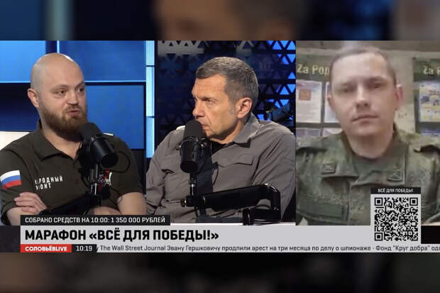 Военкор "Комсомольской правды" Александр Коц открыл 3 новых сбора в рамках проекта "Народного фронта" "Все для победы!". Об этом он заявил в эфире марафона в поддержку бойцов специальной военной операции на канале "Соловьев LIVE".