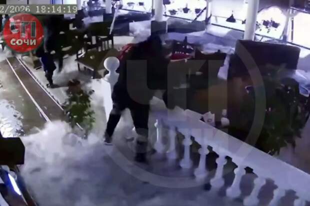 В Сочи штормовой волной выбило окна ресторана и смыло посетителей. Видео инцидента публикует Telegram-канал "ЧП Сочи".