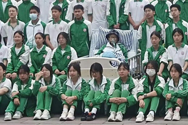 Более 50 учеников из китайской средней школы в провинции Сычуань прошли пешком более двух километров, чтобы посетить своего больного одноклассника и сделать вместе с ним выпускное фото.