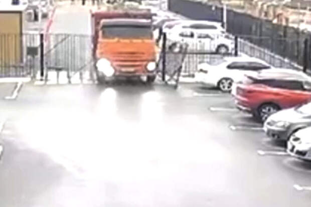 Инцидент произошел во дворе дома по улице Амурской, 39. Судя по видео, грузовой автомобиль стоял на территории парковки, но в какой-то момент поехал вперед, пробил ворота и покатился в сторону многоэтажки.
