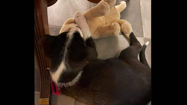 Дипломат написала, что Панди пробыла дома лишь один день и прикрепила к посту сделанную тогда фотографию, на которой щенок обнимает мягкую игрушку.
