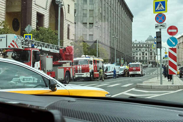 СМИ опубликовали видео обстановки после взрыва. На кадрах видно, что у ЦДМ находятся несколько машин экстренных служб, территория вокруг перекрыта.