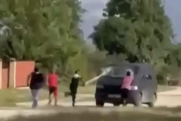 На опубликованном видео можно увидеть, как группа людей бьет палками автомобиль военкомов, а машина уезжает от них.