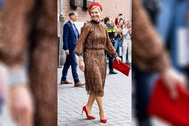 51-летняя королева Максима приняла участие в рабочем заседании и присутствовала на дискуссии о женском лидерстве. Для мероприятия королева Нидерландов выбрала шифоновое платье длины миди с леопардовым принтом, воротником-стойкой и широкими рукавами.