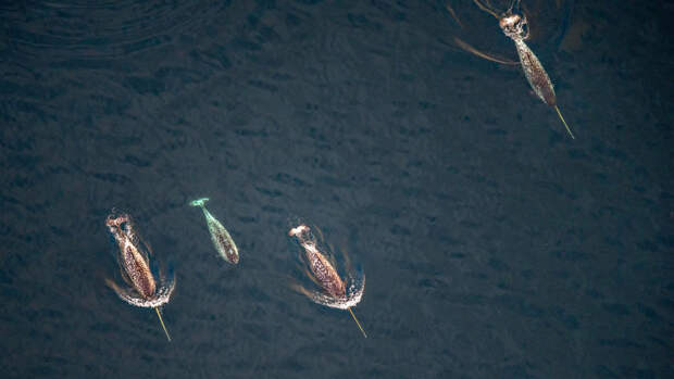 Одним из особенно ярких примеров является нарвал . Эти необучные морские существа, известные своими спиральными бивнями, проводят лето в преимущественно свободных ото льда прибрежных районах, а затем мигрируют на юг, в более глубокие арктические воды.