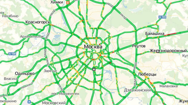 В первый день введенных в Москве карантинных мер пробки достигли 0 баллов. Об этом свидетельствуют данные "Яндекс-карты".