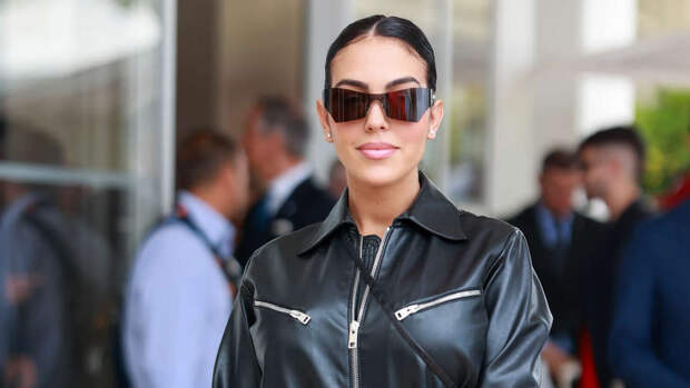 Джорджина Родригес поселилась в знаменитом отеле Martinez. Для первого после утраты выхода в свет модель выбрала total black look – черный кожаный комбинезон, черные туфли-лодочки и солнцезащитные очки.