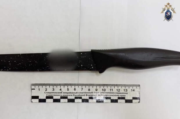 В Невинномысске Ставропольского края 15-летний подросток напал с ножом на подругу своей матери во время застолья. Пресс-служба Следственного комитета показала видео, на котором запечатлели нож.