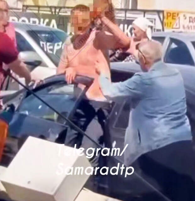 Очевидцы запечатлели инцидент на видео. На кадрах видно, как прохожие помогают полуголому водителю выбраться из поврежденного черного автомобиля и уводят в машину скорой помощи.