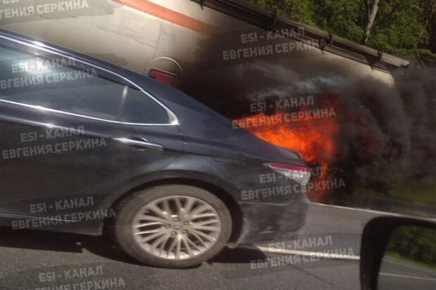 Предполагается, что водитель мог продолжить движение, чтобы увести машину с оживленной трассы.На опубликованном фото видно, что огонь охватил нижнюю часть машины в районе цистерны.