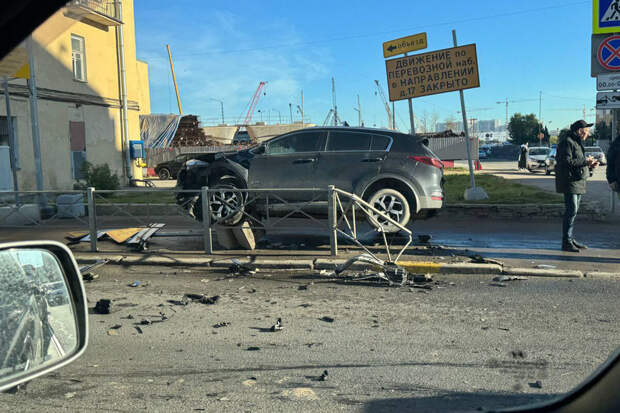 "Кроссовер вылетел на тротуар и снес столб после ДТП на проспекте Обуховской Обороны. Часть машины зависла в воздухе из-за наезда на бетонный блок. В аварию попали еще как минимум два автомобиля", - говорится в сообщении.