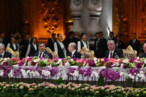 Президент РФ Владимир Путин вместе с другими лидерами СНГ после саммита, проходившего в Душанбе, посетили официальный прием. Об этом сообщает пресс-служба Кремля на странице в Telegram-канале.