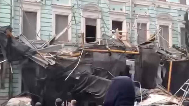 Предварительно, строительные леса находились на фасадной стене реконструируемого комплекса зданий городской усадьбы Сушкиных и Маттейсена.