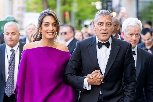 Джордж Клуни и Амаль Клуни посетили 51-ю церемонию вручения премии Чаплина, которая состоялась 27 апреля в Нью-Йорке. Юристка предстала перед публикой в мини-платье цвета фуксии и золотых туфлях на каблуках.