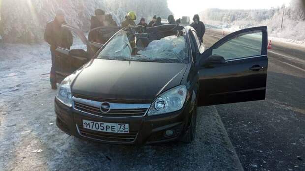 Оно срикошетило о грузовик Mercedes и влетело в салон легкового автомобиля Opel Astra. В результате ДТП погиб 52-летний водитель "Опеля", а его 53-летняя пассажирка получила травмы и была госпитализирована. На фотографии с места происшествия видно, что у легкового автомобиля от удара частично сорвало крышу.При этом водитель "КамАЗа" не заметил потери колеса и произошедшего по его вине ДТП, мужчину остановили и задержали в двух километрах от места происшествия.