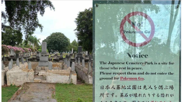 "Кладбище - это место для тех, кто покоится с миром. Пожалуйста, уважайте их и не играйте здесь в Pokemon Go", - гласит объявление для посетителей.