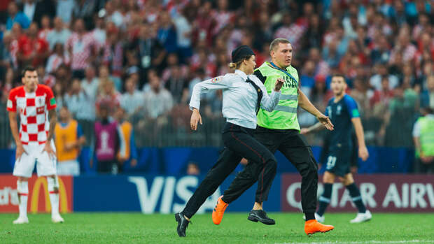 Ранее выбежавший на поле активист Pussy Riot отвечал на допросе словами Владимира Путина.
