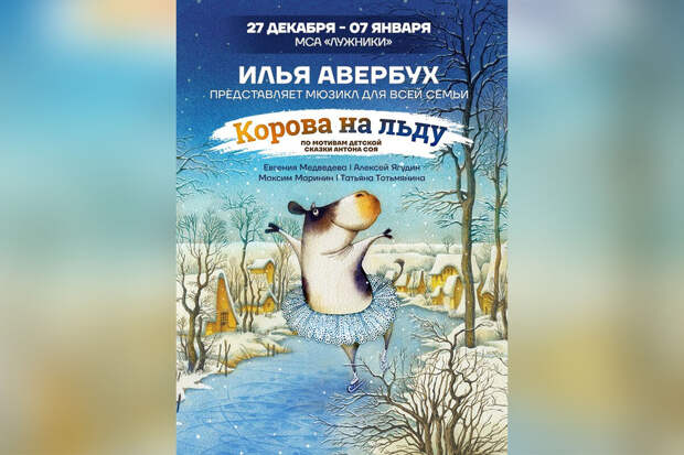 Евгения Медведева примет участие в новогоднем комедийном мюзикле Ильи Авербуха "Корова на льду", который пройдет с 27 декабря по 7 января на Малой спортивной арене "Лужники". Шоу будет посвящено приключениям коровы Мули, которая обожала зиму и мечтала стать звездой фигурного катания.