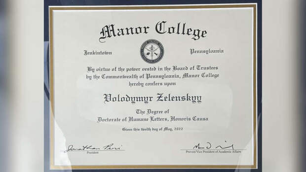 "Президент Украины Владимир Зеленский был удостоен звания Почетного доктора гуманитарных наук Манор-колледжа (Дженкинтаун, Пенсильвания).