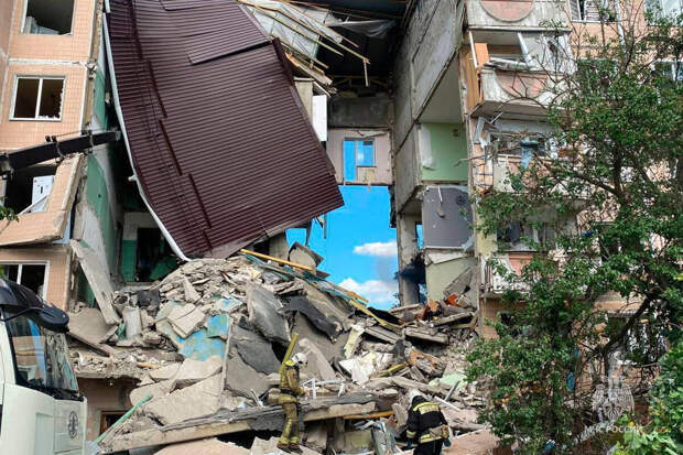 В МЧС пояснили, что спасатели ищут и спасают жильцов поврежденного подъезда. Дальнейшая информация уточняется. Ранее видео разрушенного дома предоставил Telegram-канал "Шёпот Шебекино".