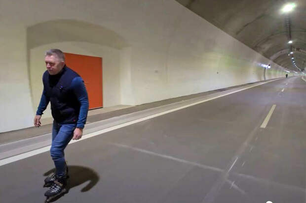 Премьер-министр Словакии Роберт Фицо прокатился на роликовых коньках по подземному тоннелю "Вишневе", который открыли спустя 27 лет строительных работ. Пост об этом опубликован на странице политика в Facebook.