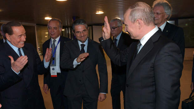 По окончании визита в Италию президент России Владимир Путин встретился с бывшим итальянским премьер-министром Сильвио Берлускони в римском аэропорту Фьюмичино . Об этом сообщает пресс-служба Кремля. О чем говорили представители двух стран, неизвестно. В Кремле лишь уточнили, что это была "краткая частная встреча".