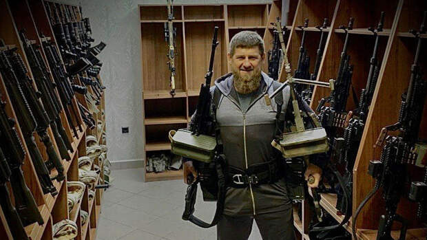 Кадыров разместил фотографию, на которой он запечатлен с двумя пулеметами Калашникова в комнате, полной стрелкового оружия.