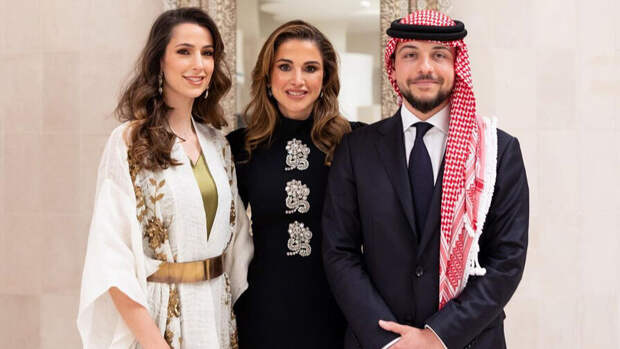 "Рада приветствовать мою третью дочь Раджву, будущую невесту Хусейна, в нашей семье. Мы так рады за вас обоих", — написала супруга короля Абдаллы II под фотографией с невесткой.