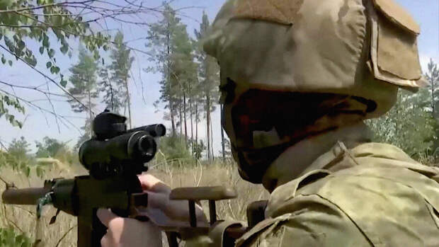 Минобороны России обнародовало кадры боевой работы снайперов ходе спецоперации на Украине. Об этом сообщает ТАСС.