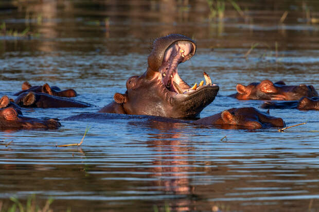 Инцидент произошел на реке Чобе в Намибии, гид перевозил группу туристов на моторной лодке. В какой-то момент путешественники приблизились к стаду бегемотов, сначала животные вели себя мирно, но в какой-то момент один из бегемотов начал преследовать лодку.