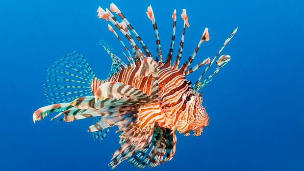 Крылатка-зебра - красочная рыба южных морей. Изначально она водилась лишь в Индийском и Тихом океанах, но в последние годы стала опасным инвазивным видом Карибского бассейна.