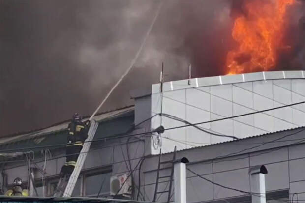 В пострадавшем здании торгового центра находится центральный рынок Читы. Огонь со второго этажа распространился на кровлю.