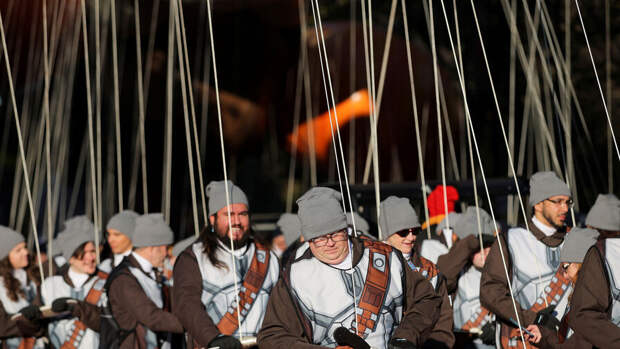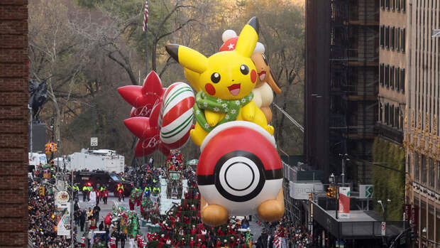 В Нью-Йорке прошел традиционный парад Macy's в честь Дня благодарения. По улицам Манхэттена проплыли гигантские надувные фигуры героев мультфильмов, динозавров и сладостей. Во главе колонны двигалась огромная фигура главного символа праздника – индейки.