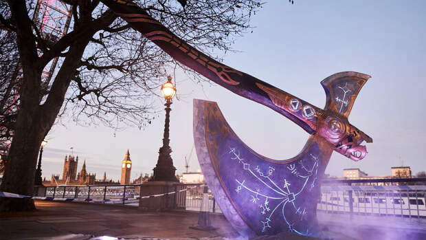 В рамках продвижения своей новой игры God of War: Ragnarok компания Sony установила в центре Лондона монумент в виде гигантского топора Левиафана. Фотографии необычного рекламного объекта появились в официальном аккаунте великобританского подразделения PlayStation.