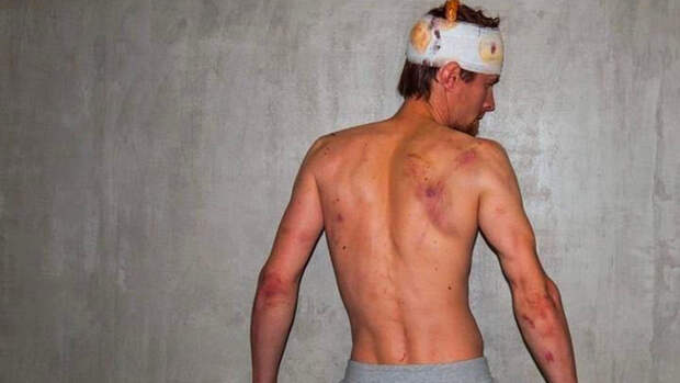 Также оказались в сети и фотографии последствий избиения Домрачева. На них видны многочисленные ссадины в районе верхней части туловища и головы.