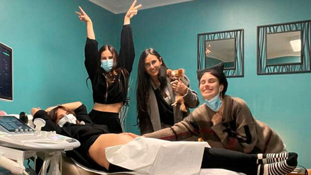 60-летняя Деми Мур поделилась фотографией беременной дочери Румер, сделанной во время процедуры УЗИ. На снимке будущая бабушка позирует в компании своих других дочерей от Брюса Уиллиса - Таллулой и Скаут.