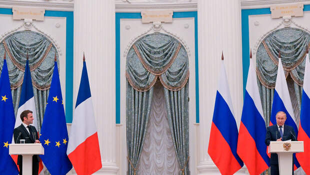 Встреча Макрона с Путиным состоялась 7 февраля, и длилась более пяти часов. Лидеры двух стран провели часть беседы за рабочим обедом, в ходе которого российский президент угостил Макрона осетриной, олениной и грушевым пирогом. По итогам переговоров была проведена пресс-конференция, после которой политики проговорили еще около 20 минут.