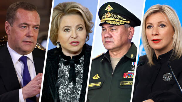 секретарь Совета безопасности РФ Николай Патрушев, министр обороны Сергей Шойгу, командующий силами в зоне военной операции Сергей Суровикин, официальный представитель Минобороны Игорь Конашенков, директор ФСБ Александр Бортников, глава МВД Владимир Колокольцев, глава Службы внешней разведки Сергей Нарышкин, глава Росгвардии Виктор Золотов, спикер Госдумы Вячеслав Володин, председатель Совета Федерации Валентина Матвиенко и многие другие.