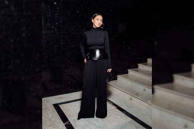 Гостьей показа стала певица Алсу. 40-летняя артистка выбрала для вечера облегающий комбинезон, кожаный пояс-юбку и туфли с острым мысом. Она распустила волосы и сделала нюдовый вечерний макияж.