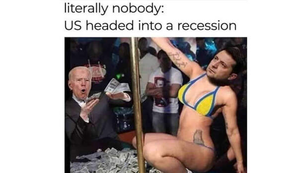 На коллаже вместе с главой Украины изображен и президент США Джо Байден в качестве зрителя, который забрасывает Зеленского деньгами.