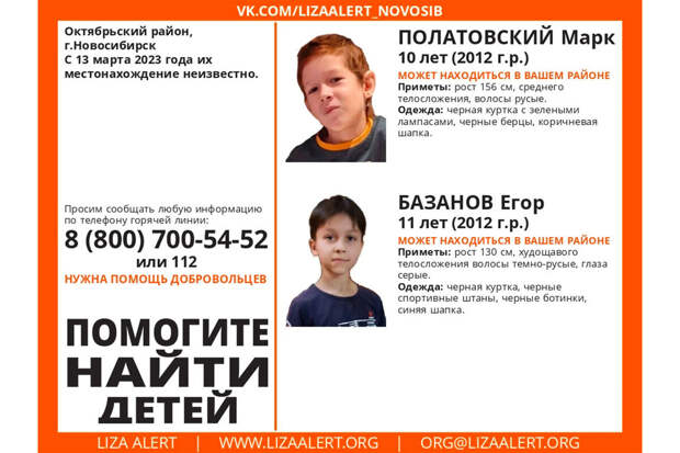 В Новосибирске пропали два мальчика 10 и 11 лет. Об этом сообщает NGS.RU со ссылкой на пресс-службу поискового отряда "Лиза Алерт".