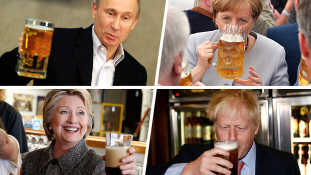 "Газета.Ru" собрала снимки политиков мирового уровня, попадавших в объективы камеры с бокалом пива в руках. Причем происходило это не только при посещении пабов, на экскурсиях на пивоварни или во время празднования "Октоберфеста". Возможность насладиться хмельным напитком президенты, министры и королевские особы находили даже во время саммитов, избирательных компаний и деловых встреч.