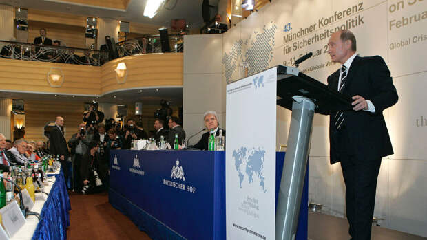 Выступая на Мюнхенской конференции в 2007 году глава России подверг жесткой критике внешнюю политику США и идеи однополярного мироустройства, высказался против планов расширения НАТО и размещения в Восточной Европе объектов американской противоракетной обороны.