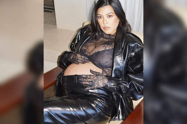 На черно-белых снимках 44-летняя Кортни Кардашьян позировала в прозрачном кружевном топе и кожаном костюме, состоящем из пиджака и брюк с заниженной талией.