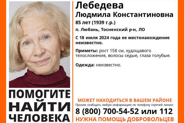 Другие детали пока не сообщаются. О том, что Лебедева пропала, стало известно 19 августа. При этом близкие не могли установить местонахождение 85-летней Лебедевой еще с 18 августа.