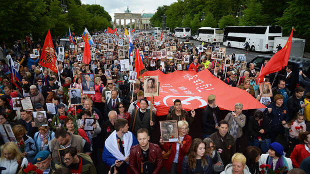 Суд разрешил российские флаги и символику на время шествия "Бессмертного полка". Участники акции пройдут по улице 17 июня от Бранденбургских ворот до мемориала в Тиргартене.